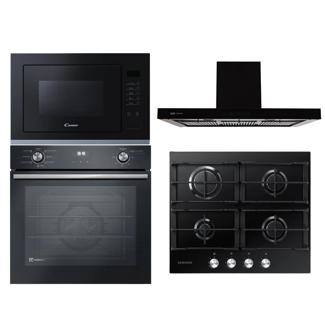 Combo Horno a gas Empotrable Electrolux Microondas Anafe a gas y Campana Negra